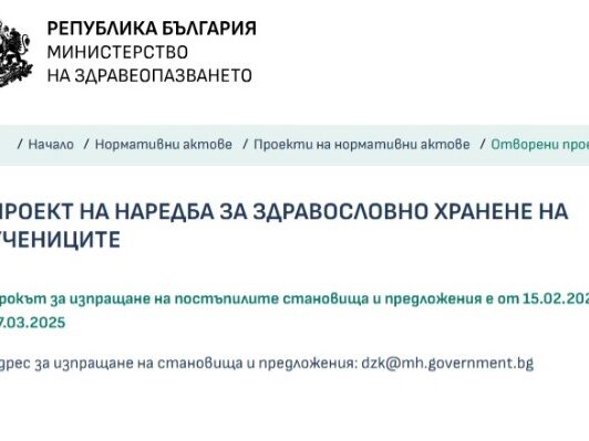 Проект на Наредба за здравословно хранене на учениците – становище от фондация „За храната“